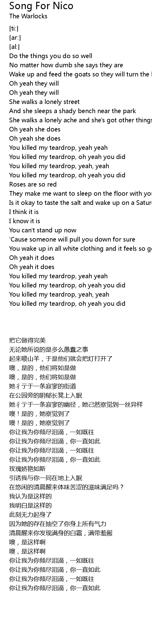 You killed my teardrop, yeah yeah |
