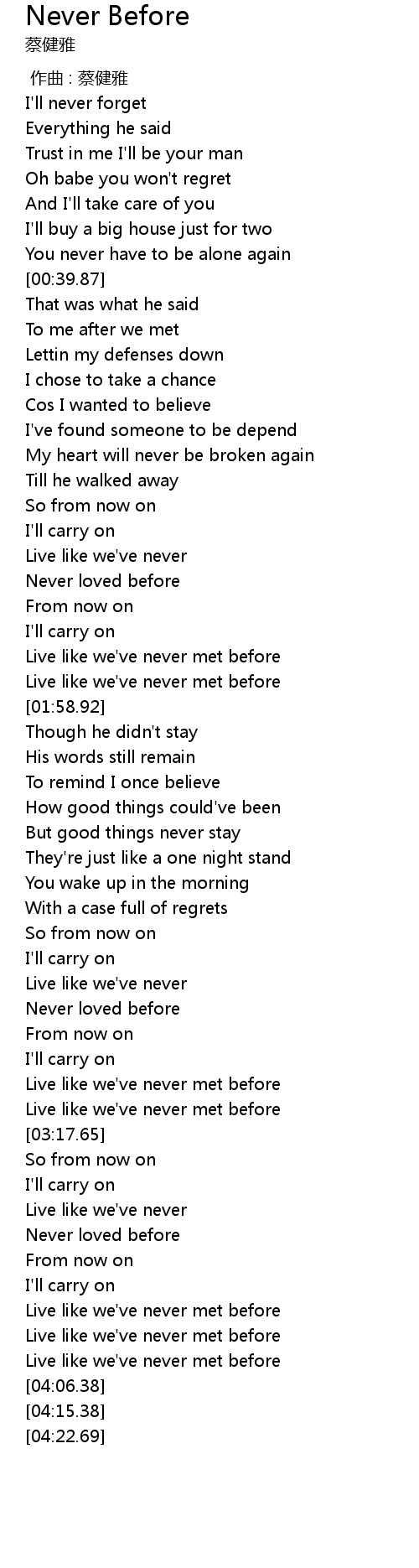 | [01:45.29] | Live like we've never met before |