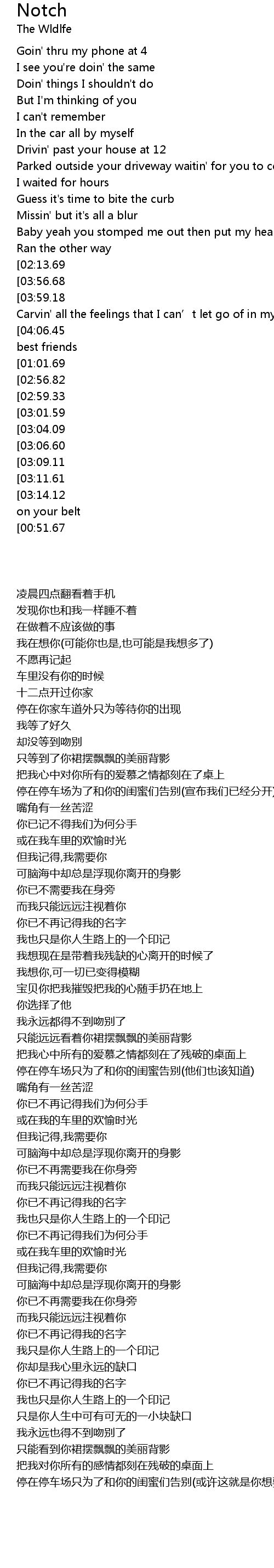 | [02:34.01][03:14.12][03:16.88][03:26.35][03:33.87][01:23.05] | I’m a notch that's on your belt |
