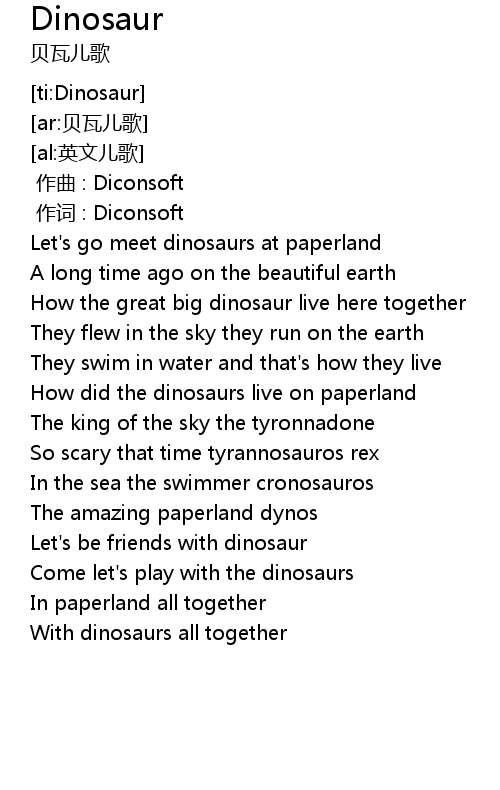 | [00:02.39] | Let' s go meet dinosaurs at paperland |