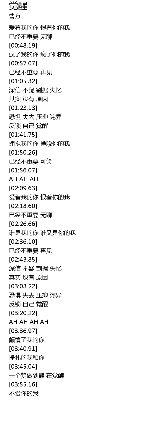 | [03:46.61] | 一个梦做到醒 在觉醒 |