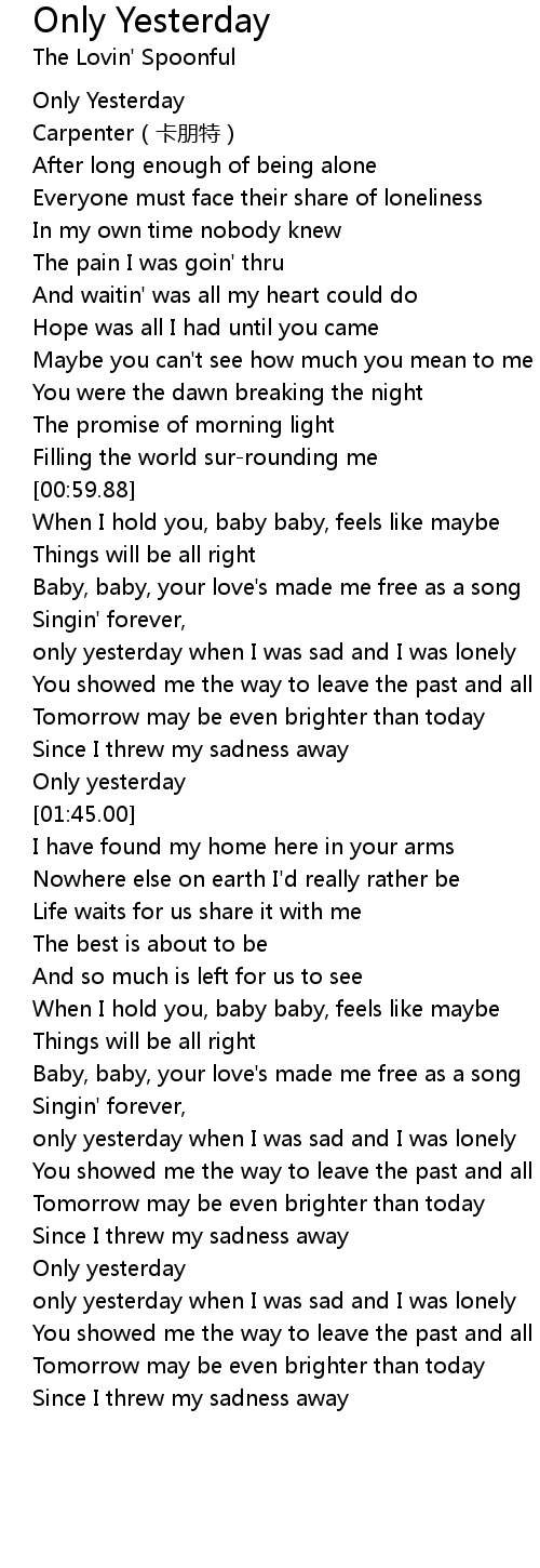 | [01:15.50] | only yesterday when I was sad and I was lonely |