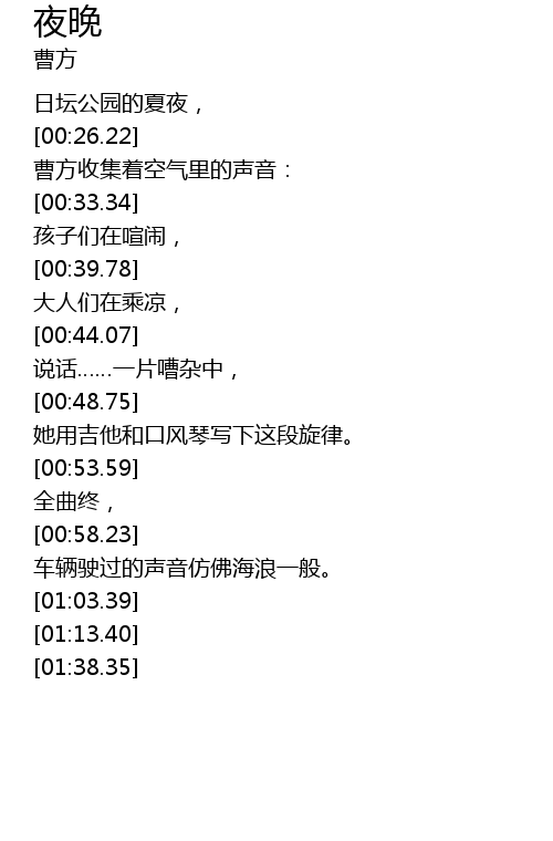 | [00:29.81] | 曹方收集着空气里的声音: |