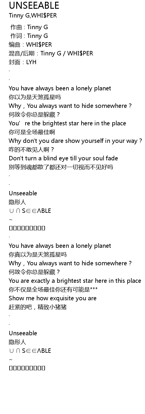 | [02:57.110] | ⓤⓝⓢⓔⓔⓐⓑⓛⓔ |