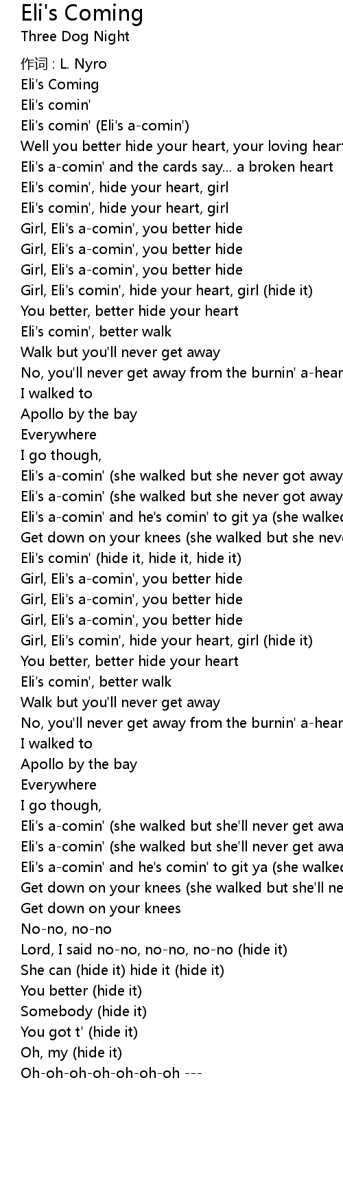| Eli's comin' (Eli's a-comin') | |
