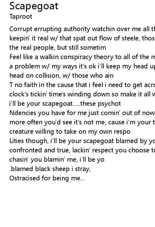 T no faith in the cause that i feel i need to get across in my lifetime the clock's tickin' time's winding down so make it all worthwile stop blamin' me, i'll be your scapegoat.....these psychot |