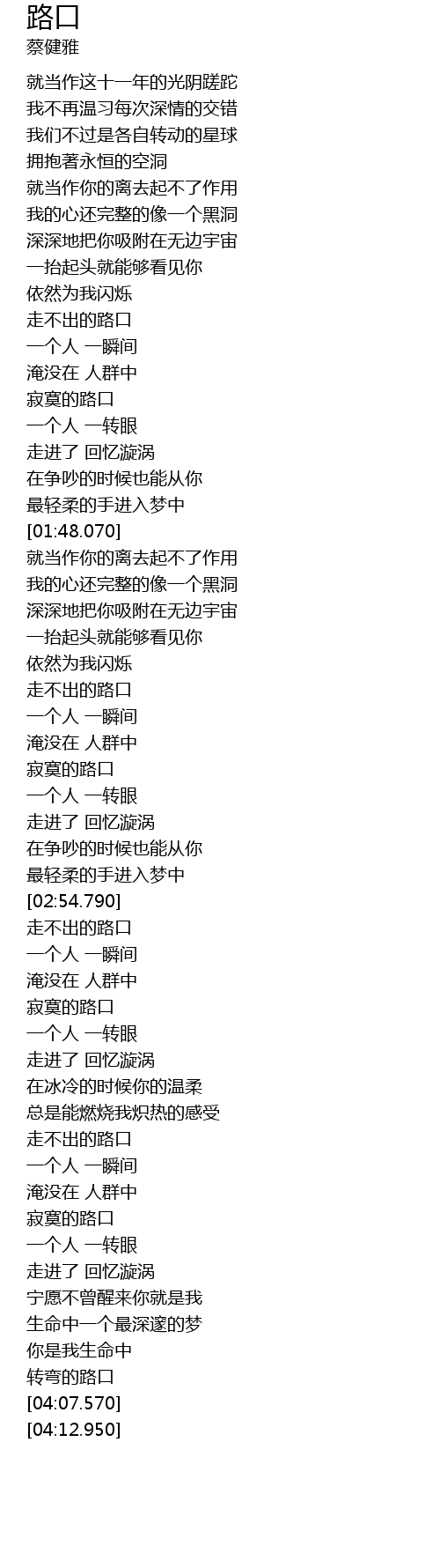 | [03:01.200] | zǒu bù chū de lù kǒu |