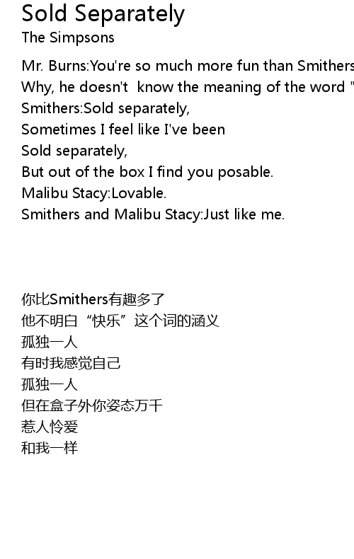 | [00:29.66] | Smithers and Malibu Stacy:Just like me. |