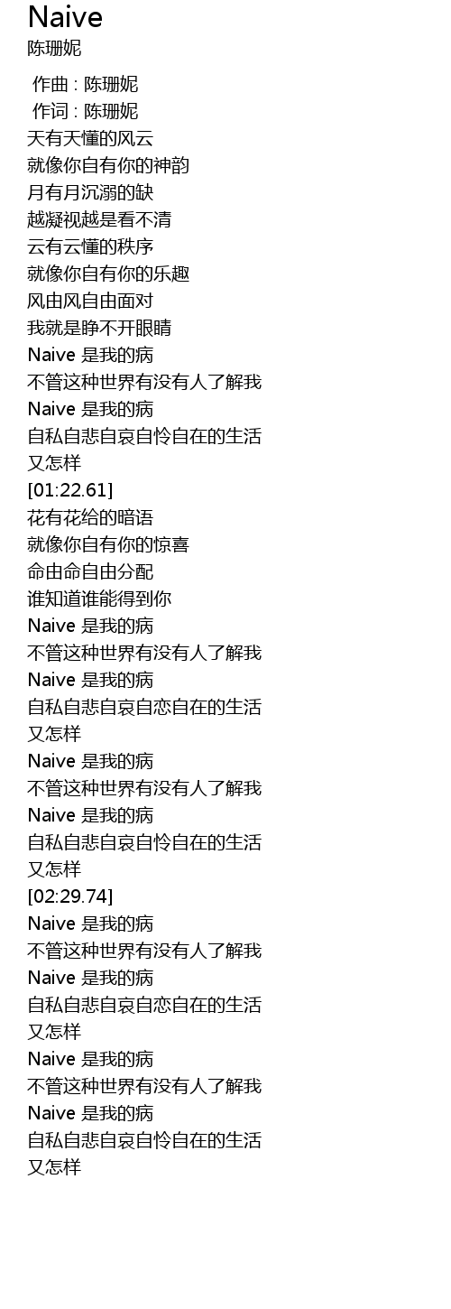 | [03:22.67] | Naive 是我的病 |