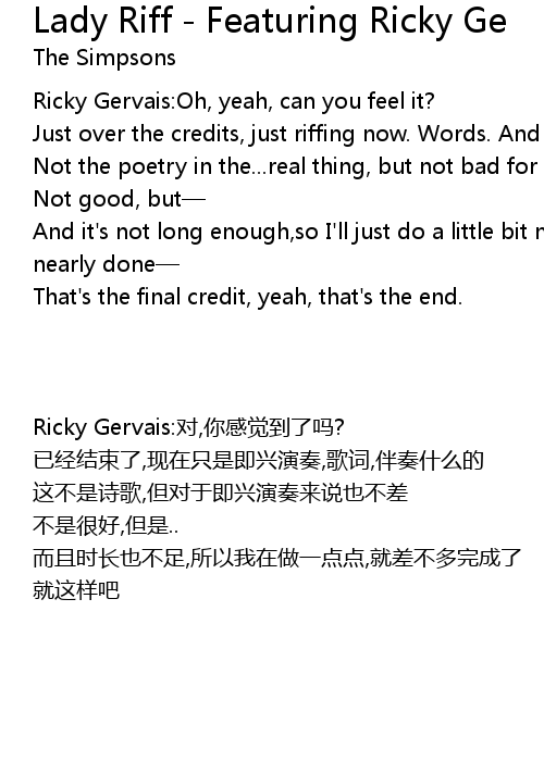 | [00:03.87] | Ricky Gervais: Oh, yeah, can you feel it? |