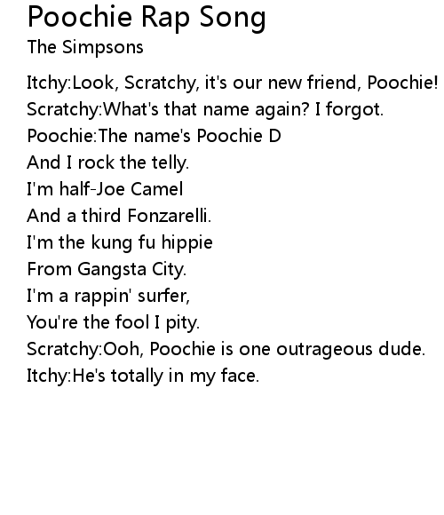 | [00:00.59] | Itchy:Look, Scratchy, it's our new friend, Poochie! |