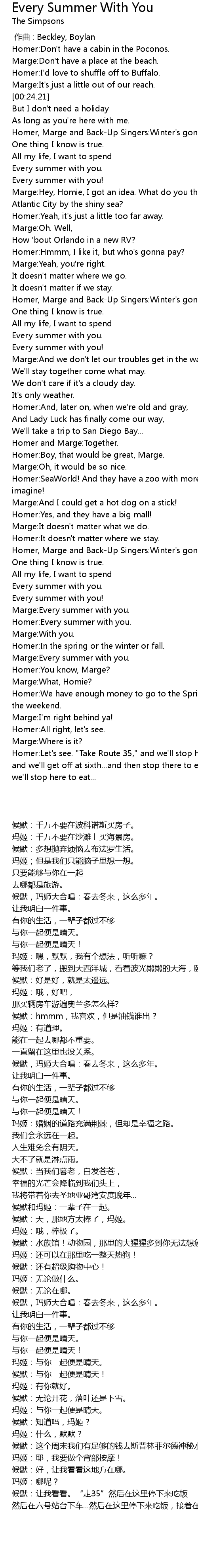 | [03:03.82] | Marge:Every summer with you. |