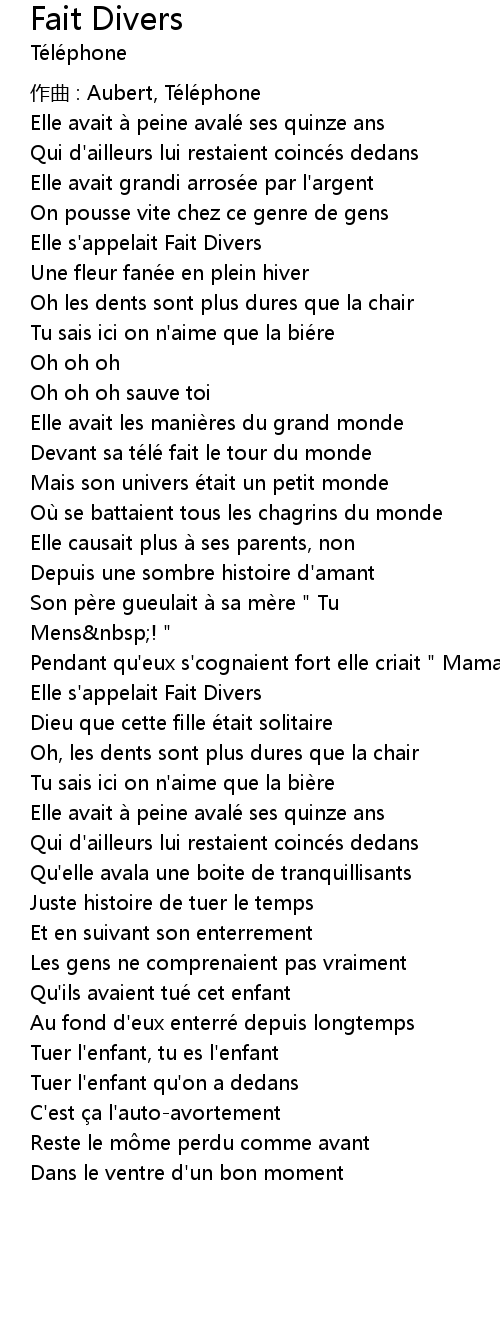 | 歌曲 | Fait Divers |