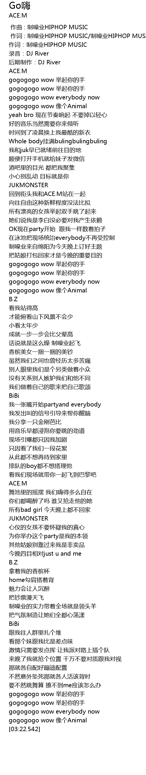 | [03:05.418] | gogogogo wow 举起你的手 |