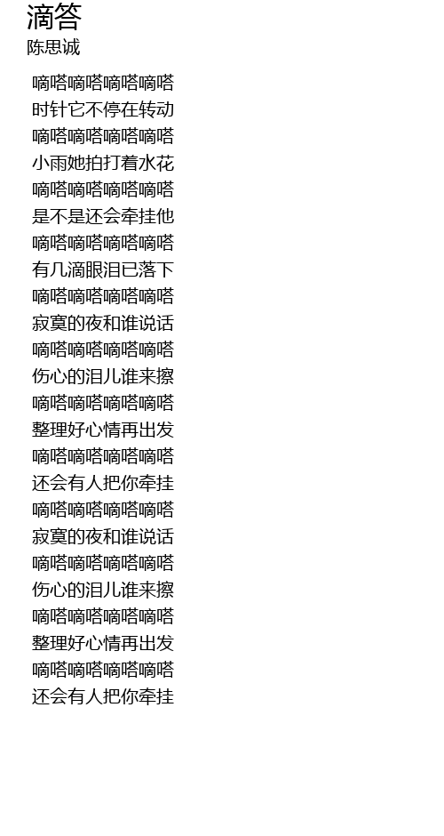 | [02:32.680] | 嘀嗒嘀嗒嘀嗒嘀嗒 |
