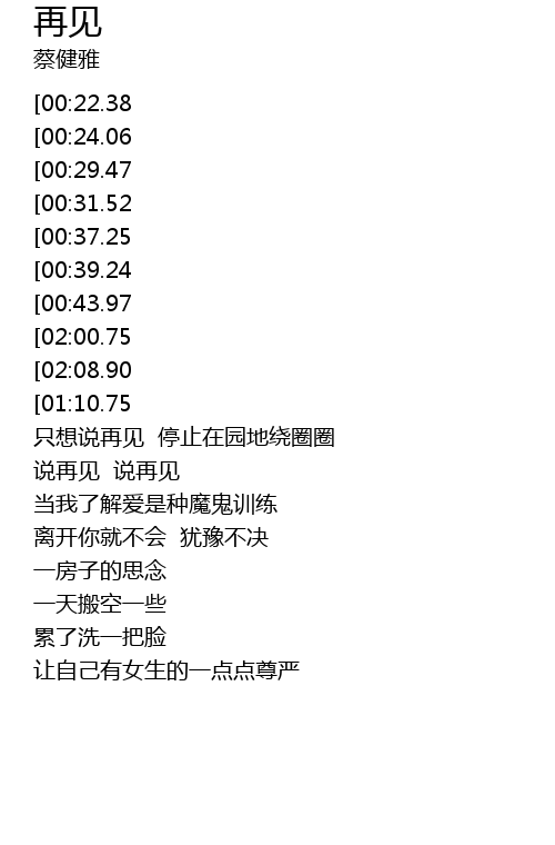 | [03:02.96] | 只想说再见 停止在园地绕圈圈 |