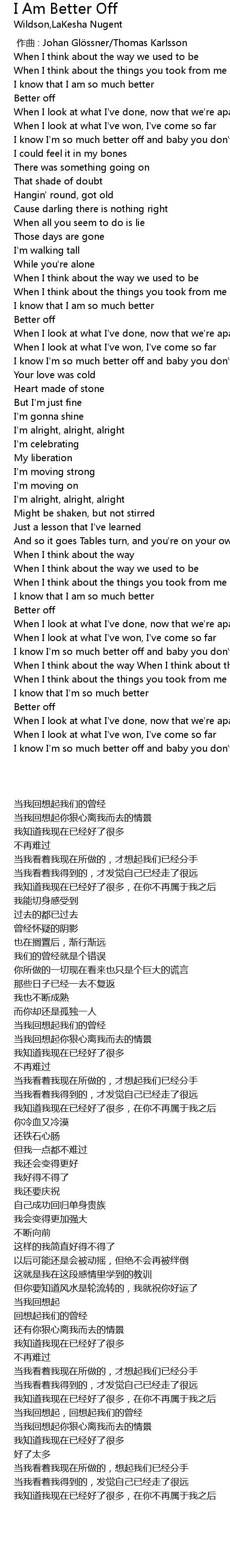 | 歌曲 | I Am Better Off |