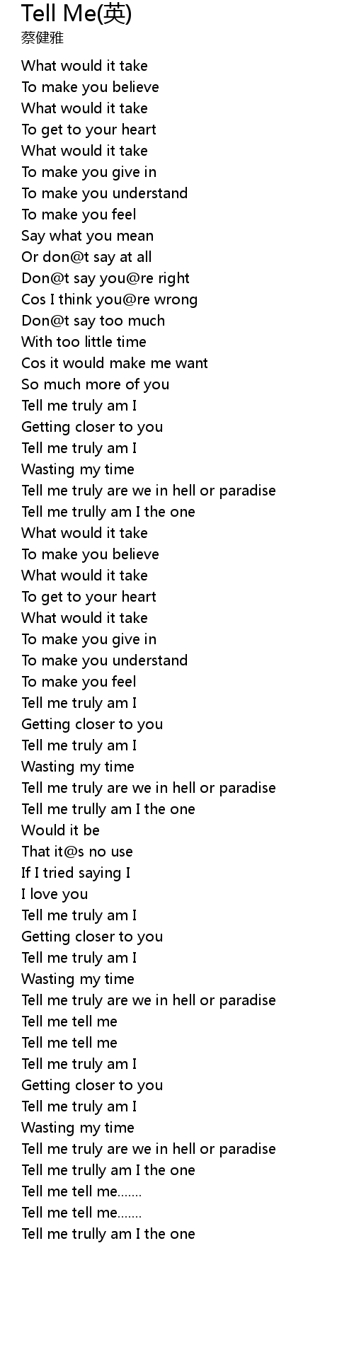 | [00:52.379] | Tell me truly are we in hell or paradise |