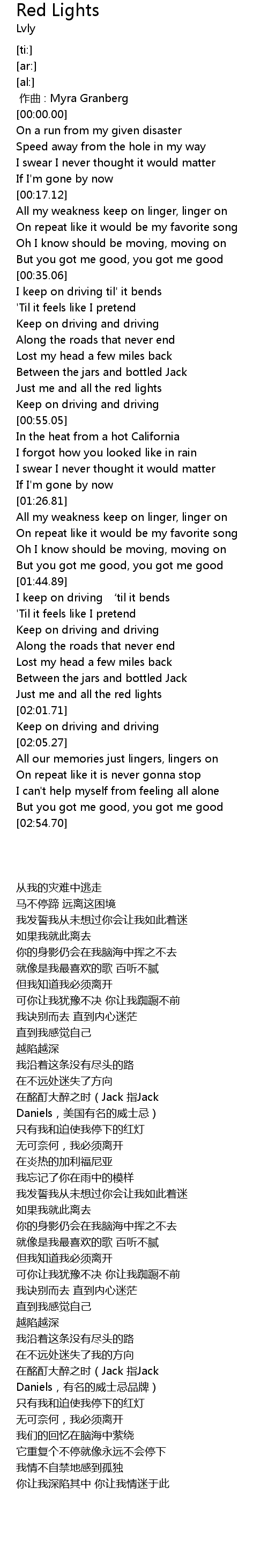 | [00:48.77] | Just me and all the red lights |