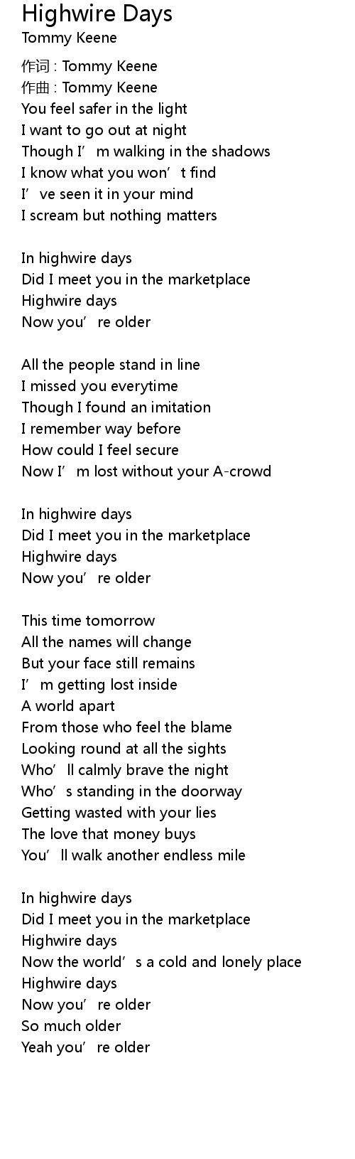 | 歌曲 | Highwire Days |