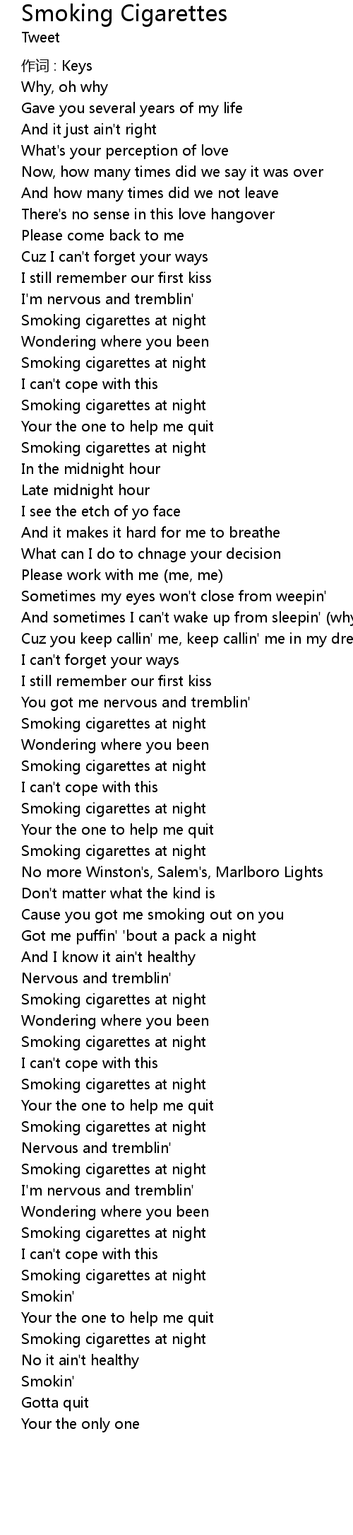 | 歌曲 | Smoking Cigarettes |