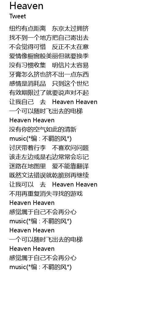 | [01:23.00] | Heaven Heaven |