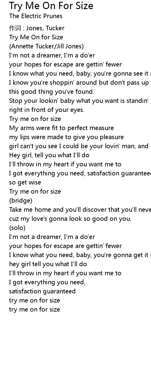 | 歌曲 | Try Me On For Size |