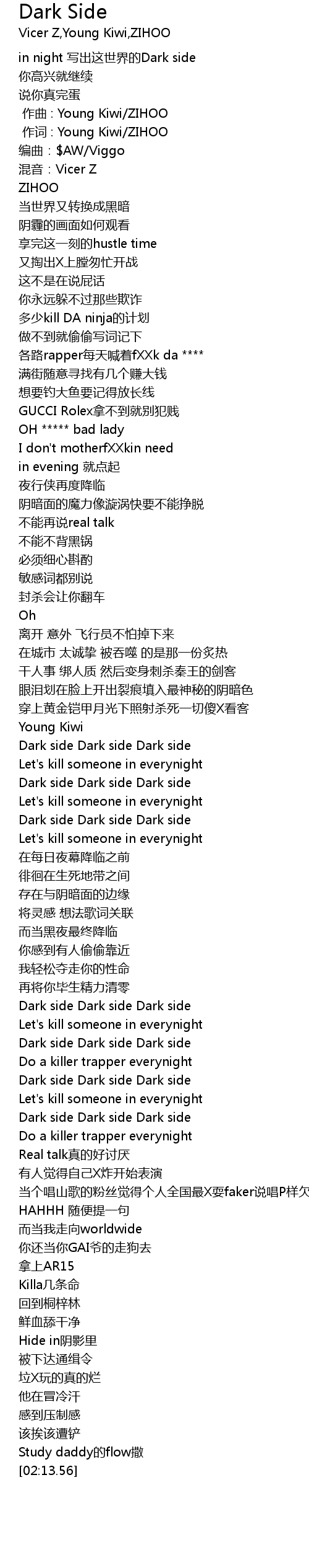 | [00:01.000] | 作词 : Young Kiwi/ZIHOO |