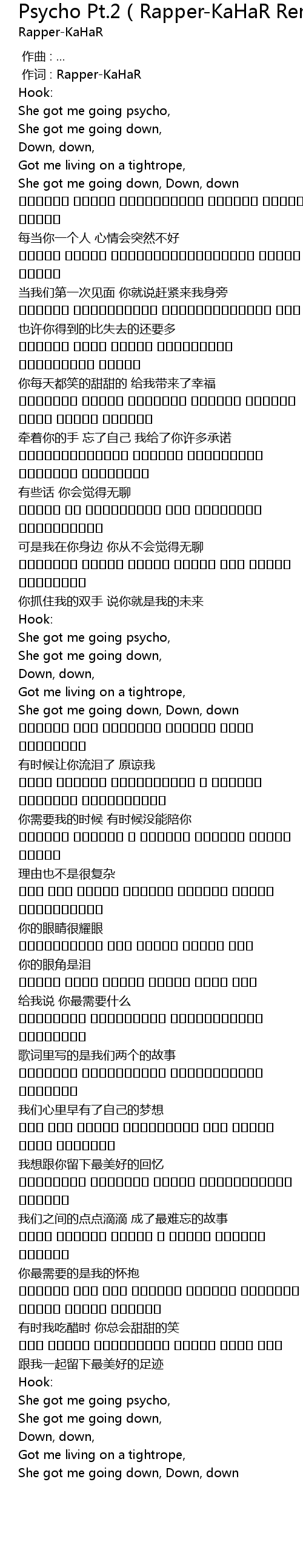 | 歌曲 | Psycho Pt.2(Rapper-KaHaR Remix) |