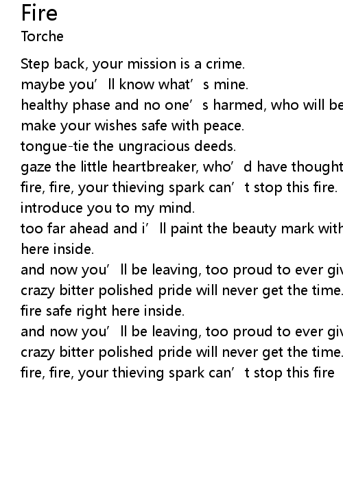 | fire, fire, your thieving spark can' t stop this fire. | |