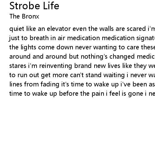 quiet like an elevator even the walls are scared i'm dependent on a generator just to breath in air medication medication signatures and stares watching all the lights come down never wanting to care these circles seem so strange i run around and around but nothing's changed medication medication signatures and stares i'm reinventing brand new lives like they were never there i never want to run out get more can't stand waiting i never want to run out don't stop the lines from fading it's time to wake up i've been asleep for far too long it's time to wake up before the pain i feel is gone i never want to run out |