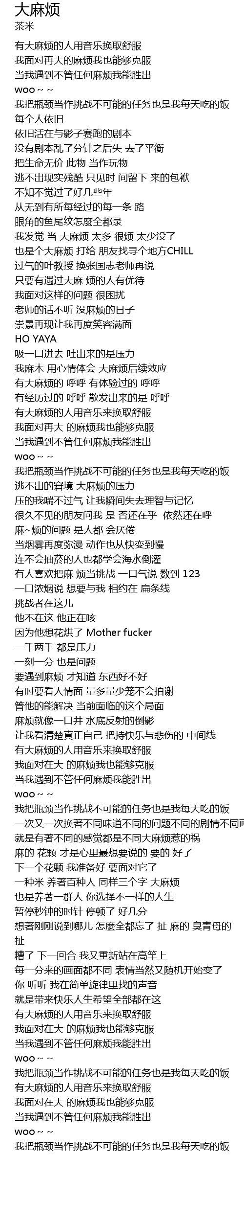 | [02:52.05] | yī zhǒng mǐ yǎng zhe bǎi zhǒng rén tóng yàng sān ge zì dà má fán |