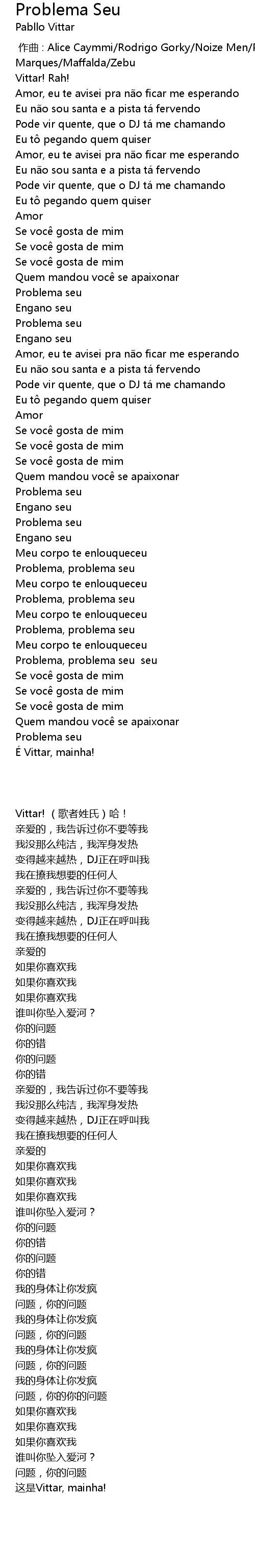 | 歌曲 | Problema Seu |