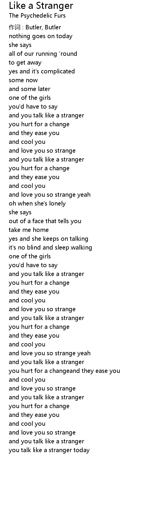 | and you talk like a stranger | |