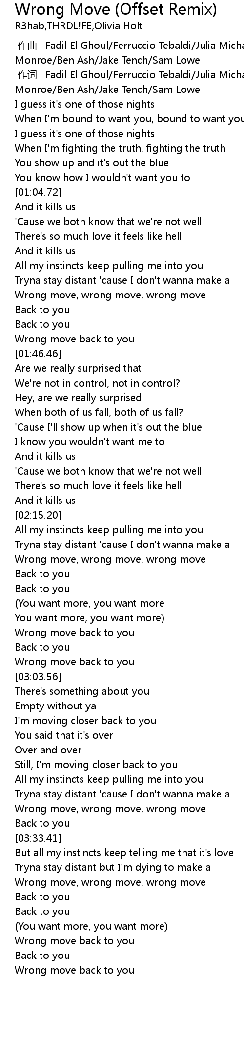 | [02:25.34] | Wrong move, wrong move, wrong move |