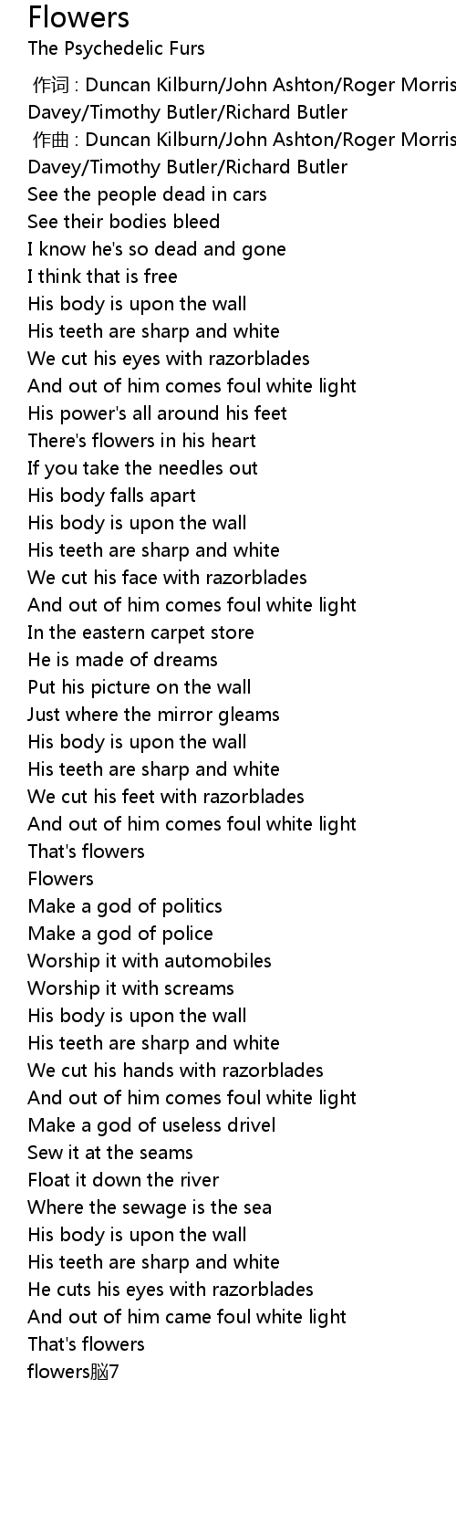 | [00:00.000] | 作词 : Duncan Kilburn/John Ashton/Roger Morris/Vincent Davey/Timothy Butler/Richard Butler |
