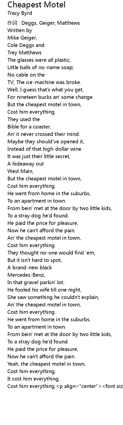 | But the cheapest motel in town, | |