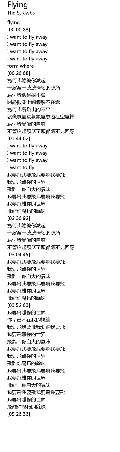 | [04:43.34] | 我要飛我要飛我要飛我要飛 |
