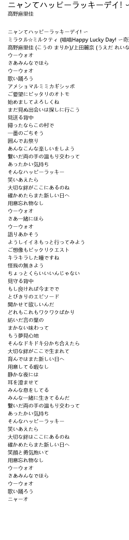 | 歌曲 | ニャンてハッピーラッキーデイ! 〜 ミラクル☆ミルクティ |