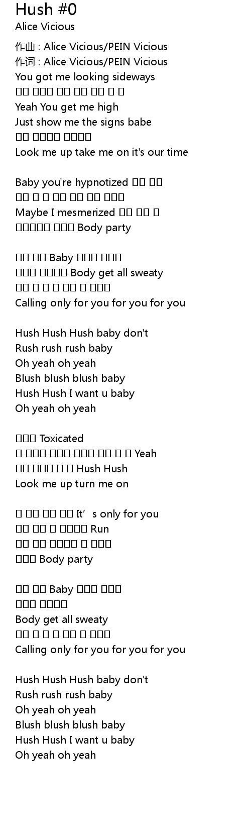 | Hush Hush Hush baby don't | |