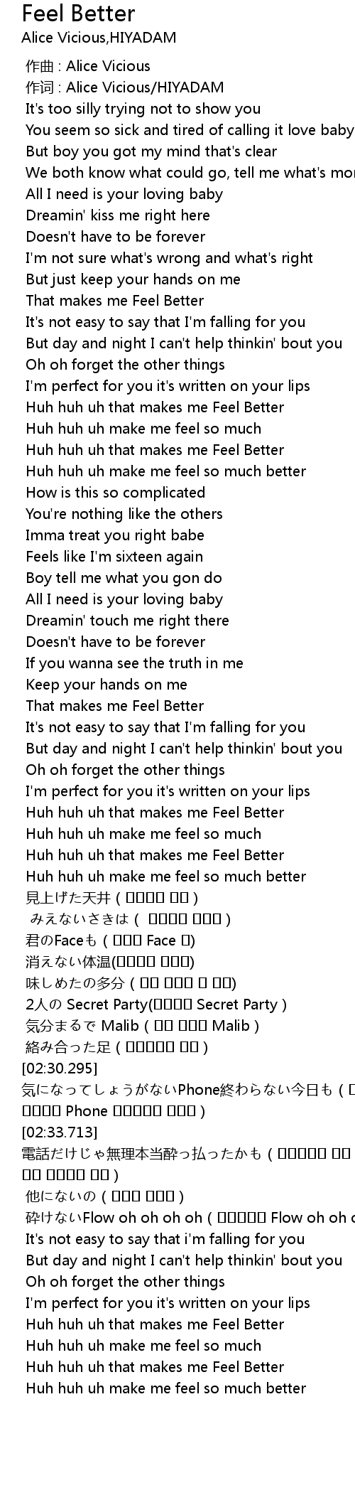 | [02:11.786] | Huh huh uh make me feel so much better |
