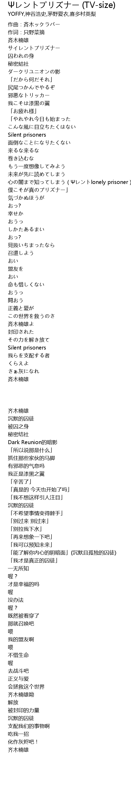 | [00:39.51] | 心の闇まで知ってしまう(Ψレントlonely prisoner) |