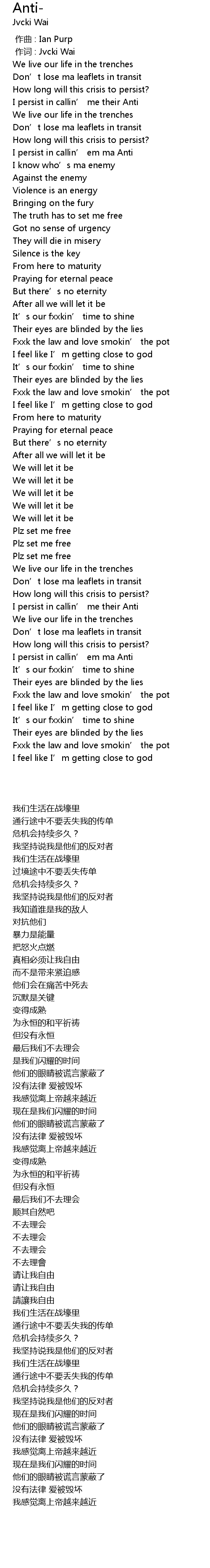 | [02:45.000] | Fxxk the law and love smokin' the pot |