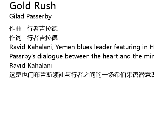 | Ravid Kahalani, Yemen blues leader featuring in Hebrew plays the subconscious of Passrby' s dialogue between the heart and the mind | |