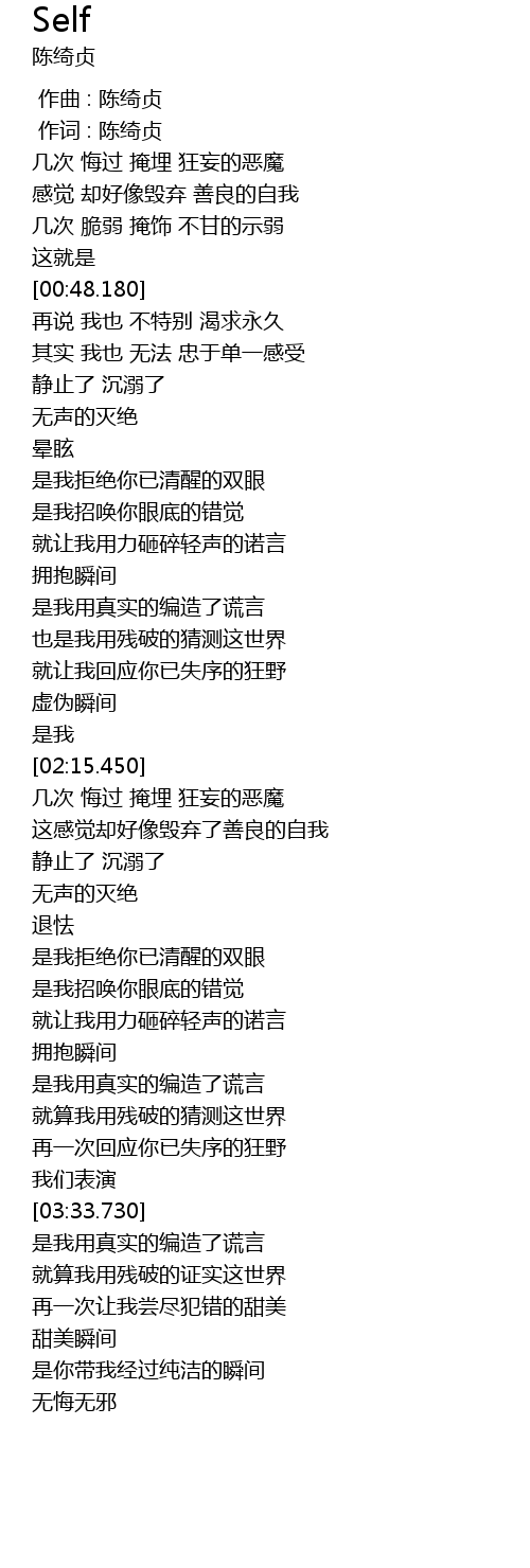 | [00:35.140] | 感觉 却好像毁弃 善良的自我 |