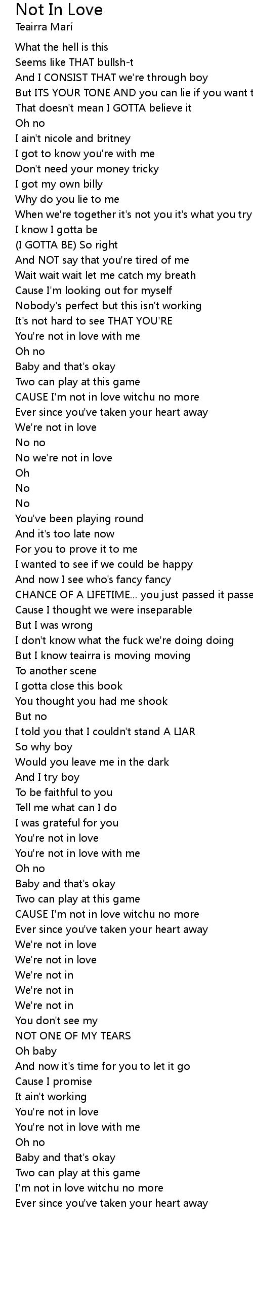 CAUSE I'm not in love witchu no more |