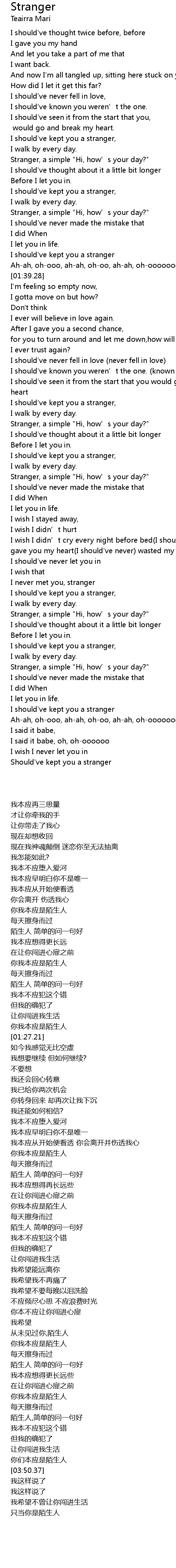 | [02:39.67] | Stranger, a simple "Hi, how’s your day?" |