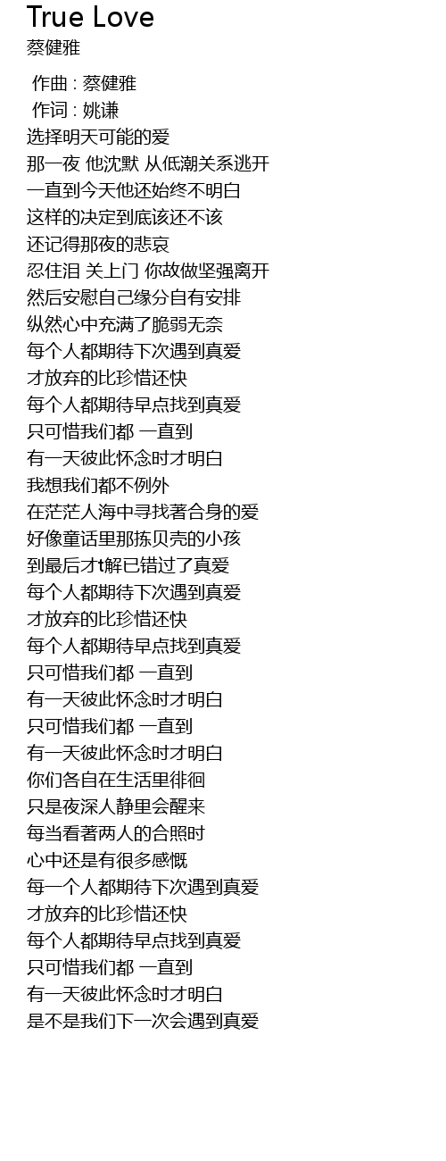 | [02:51.680] | 每一个人都期待下次遇到真爱 |