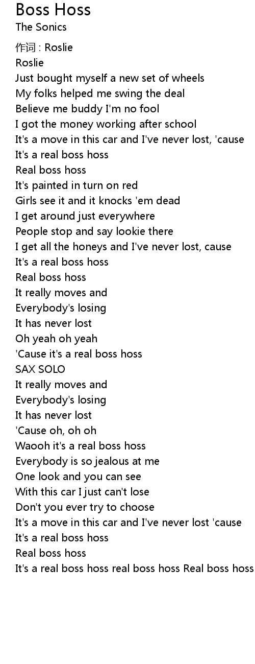 | It's a real boss hoss real boss hoss Real boss hoss |