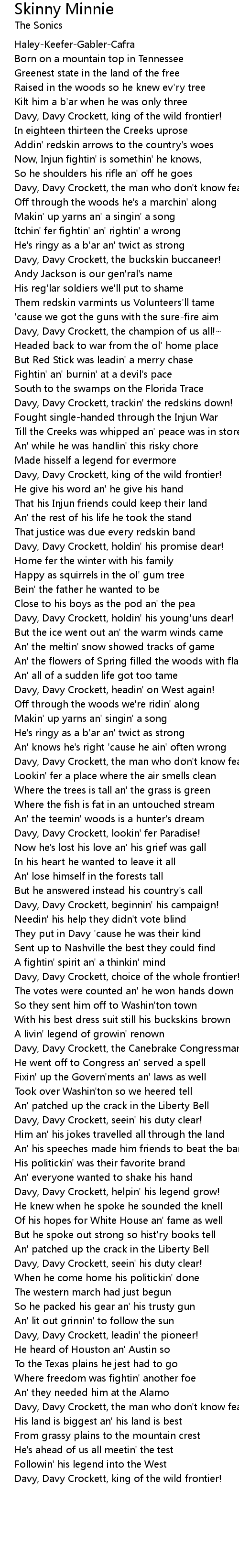 Davy, Davy Crockett, holdin' his young'uns dear!